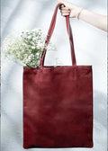 Genuine Leather Flat Tote Bag in Maroon