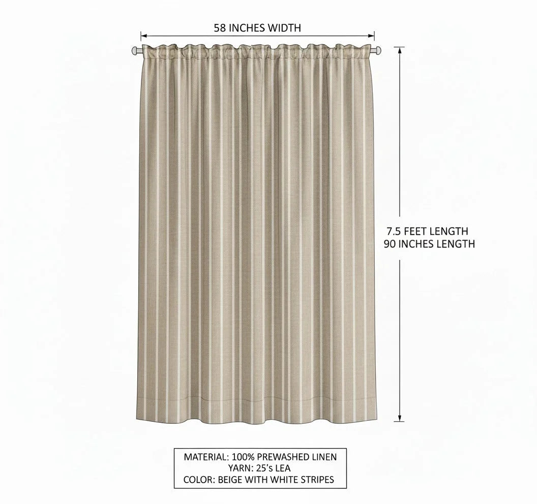 Softly Draped Linen Curtains in Natural (Beige) with White Stripe