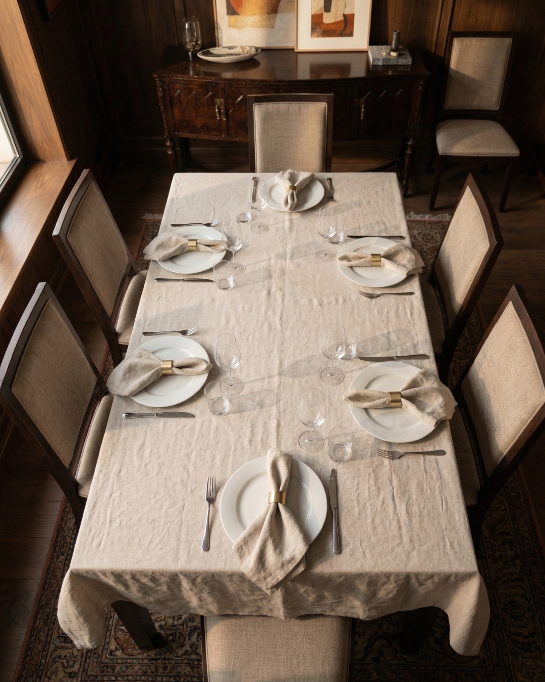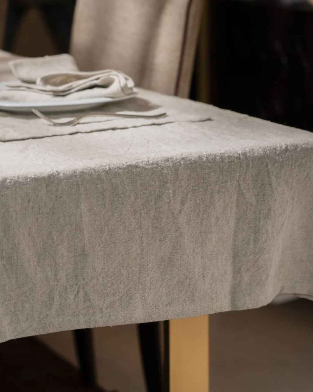 A warm and inviting dining set designed to add depth and character to your table. This bundle features our Natural Belgian linen tablecloth and napkins, bringing earthy elegance to everyday meals and special occasions.
